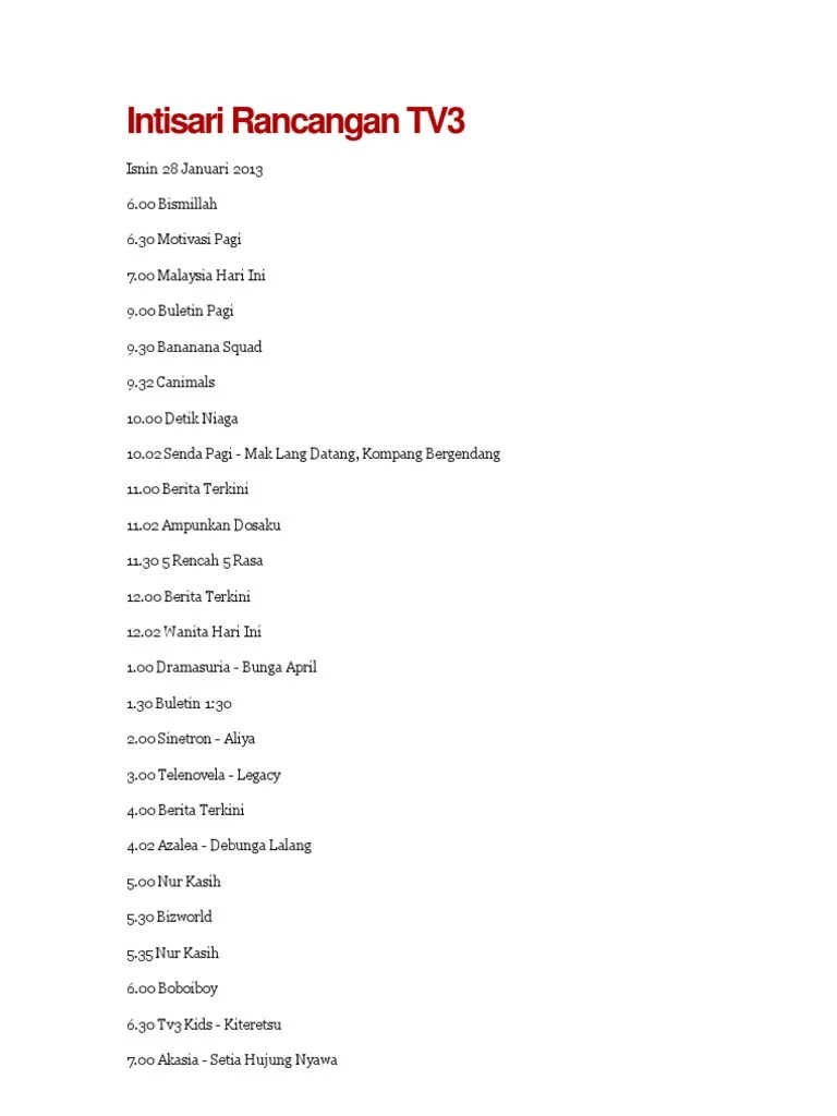 Intisari rancangan tv3 2018 hari ini mauricectz. Intisari rancangan tv2 hari ini pengisian kemerdekaan rtm di tv1 tv2 tvi utusan. This is a list of television programmes broadcast by rtm tv2 malaysia either currently broadcast, repeat broadcast and formerly broadcast on rtm tv2 . Intisari rancangan tv3 hari ini. Minggu ini, tapau show #kasiviral akan menemui anda seperti biasa. Sistem ini memaparkan maklumat program tv2.